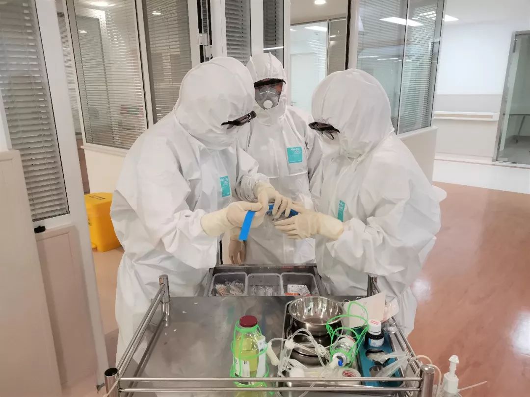 穿着厚厚的隔离衣、防护服,带着防护口罩和眼罩,手上带着两层手套,脚上套着鞋套,全副武装后平时轻车熟路的静脉穿刺变得十分困难;为节省防护装备,担心中途去厕所,她(他)们没敢多吃,也没敢喝水,日日夜夜为患者守护,她们也从未喊过累,只为医者用心,一心为民。