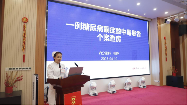 言克莉主任则围绕《静疗护理新进展》进行了深入讲解,为参会人员带来了前沿的静脉治疗方面的新理念、新知识、新技术,为我院静疗专科护理发展注入了新能量。 我院12病区内分泌科骨干护士程静就《一例糖尿病酮症酸中毒个案查房》进行报告,专家们提出了宝贵的意见与建议。