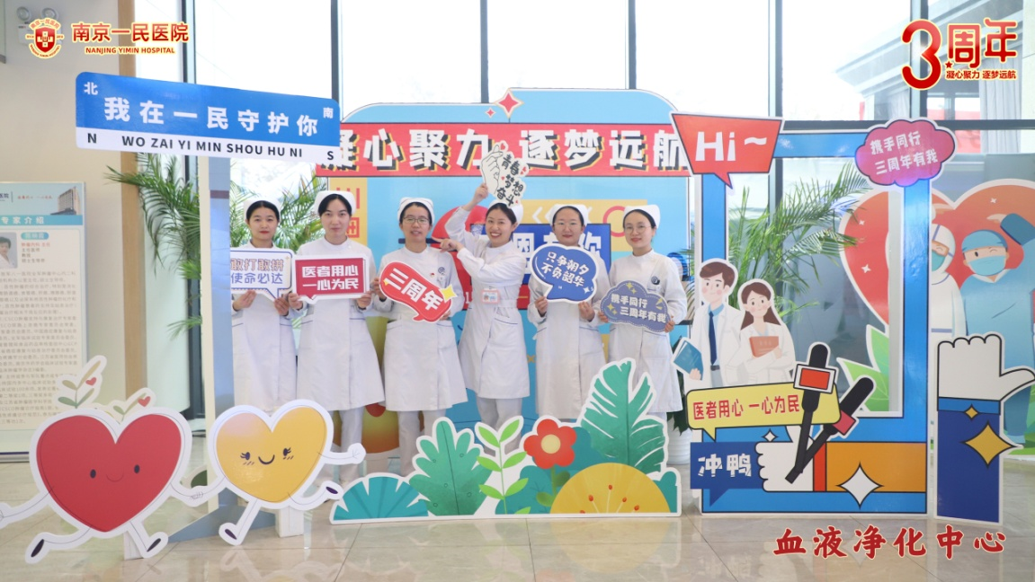 如今站在六周年的晨光里,血透室的透析机器从几台增加到49台,护理记录单已经进入了电子信息化系统,提高了工作效率。我们的护理团队从5人已经发展到17人。当年举着“只争朝夕”手牌的新人,已经能笑着给患者扎针,独当一面。再看三周年的合影,忽然懂了“凝心聚力”的意思:原来成长从来不是独行的路,是我们攥着彼此的光,把“守护”这件事,越做越暖;是医院的路越走越宽,而我们把“守护”的温度,从三载的笑靥,焐成了六载的深情;是三载时的“使命必达”,长成了六载时的“一心为民”;是我们攥着彼此的光,把血透室的暖,从三周年的一瞬,焐成了六周年的长明。