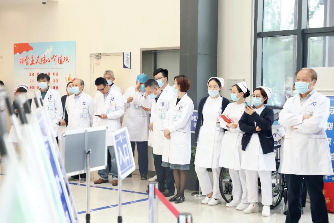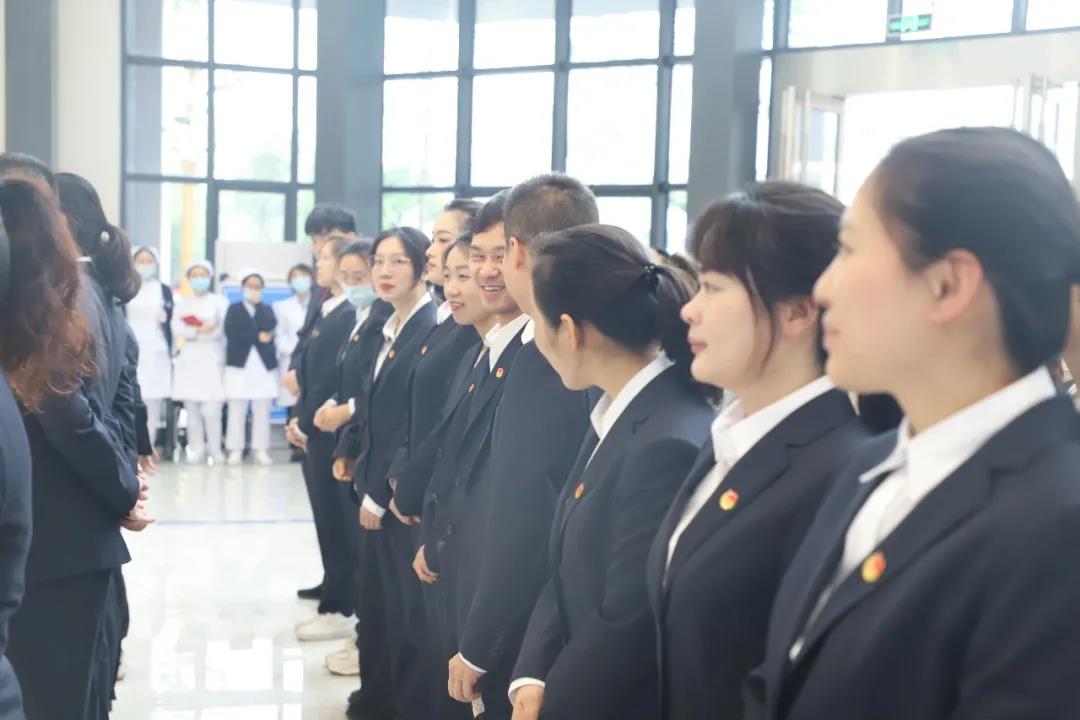 院党总支委员向共青团委授团徽 院党总支刘大林书记表示,希望通过此次活动,树立医院青年医护的身份意识和责任意识,增加我院青年医护对团组织的认同感、归属感,提升团组织的吸引力和凝聚力,更希望一民医院的青年医护们不负韶华、努力学习、砥砺前行,做新时代的奋进者。