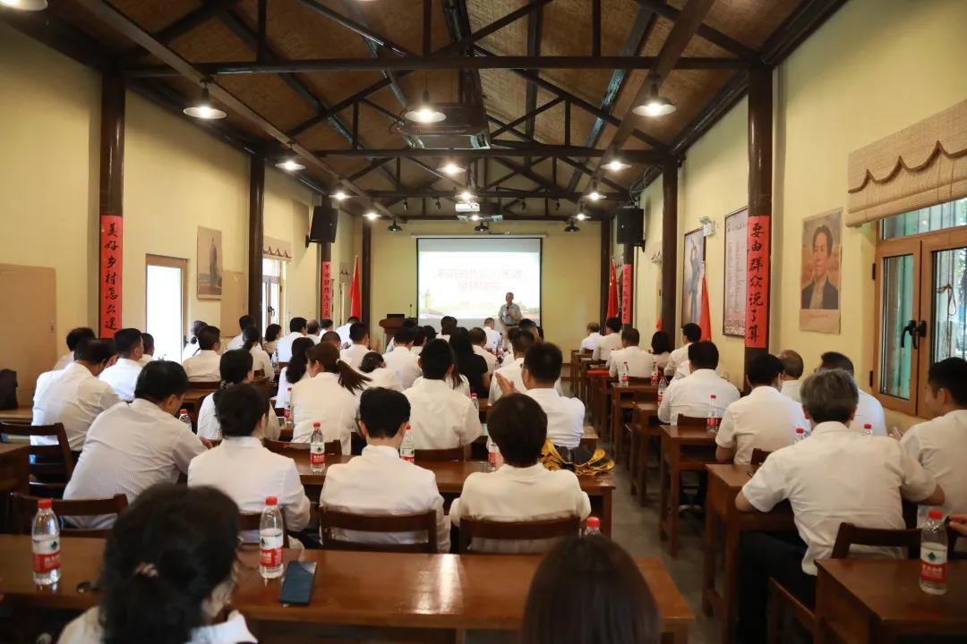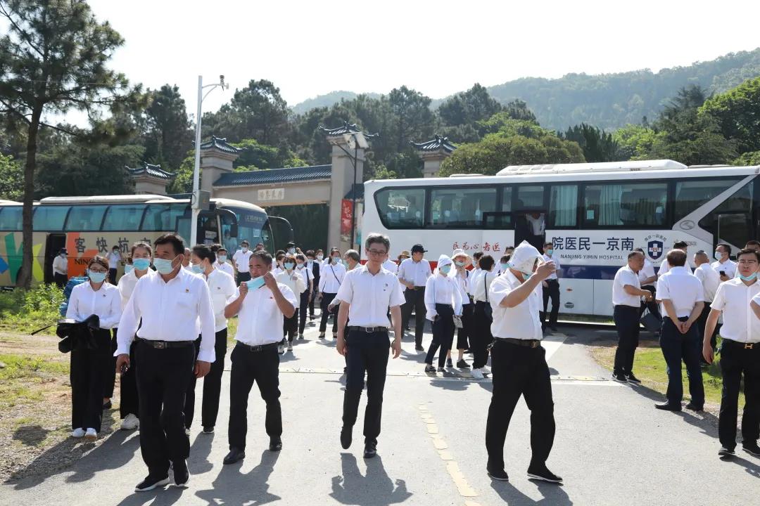 5月30日上午,南京一民医院党总支、南京兰叶建设集团党支部,近九十名党员同志,牢记习近平总书记近日在广西视察时的教导:“用好红色资源,传承好红色基因,把红色江山世世代代传下去。”在党总支书记、董事长刘大林同志的率领下,前往“苏南红色小延安??南京市溧水区白马镇李巷村”,进行了一场“缅怀革命先烈,重温入党誓词”,别开生面的“学党史、悟思想、祭先烈、做奉献”专题党课教育活动。