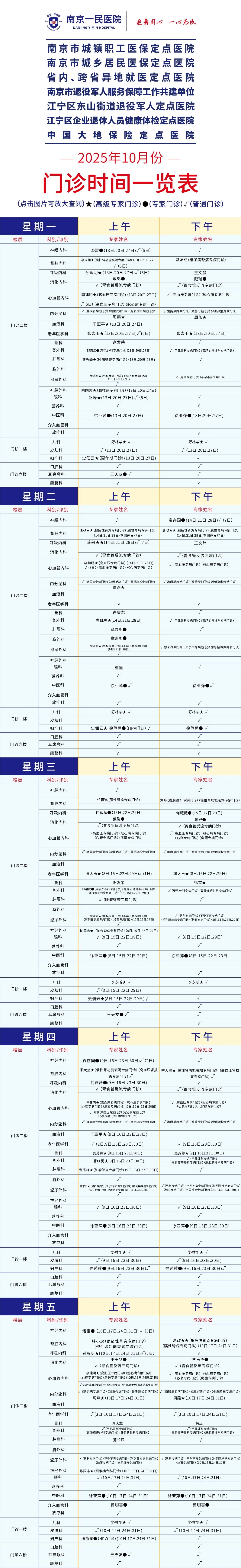 专家门诊 | 南京一民医院2025年10月专家门诊时间一览表