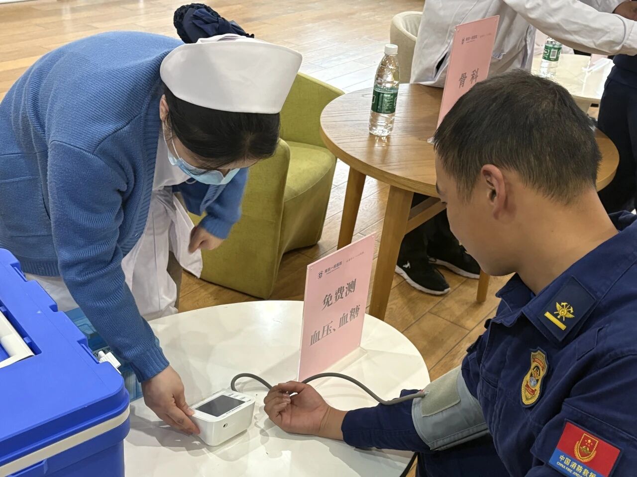 此外,医疗团队还为消防员及家属们测量血压、血糖,发放健康手册,普及急救知识、职业病预防与心理调适方法,耐心解答各类健康疑问。