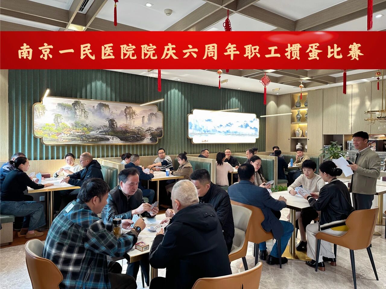 为庆祝建院六周年,展示我院各部门、科室员工积极向上、昂扬奋发的精神面貌,丰富员工业余文化生活,营造和谐友好的工作氛围,11月22日上午9点,我院六周年院庆职工掼蛋比赛如期火热开赛。