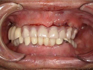 由于右侧种植体是数年前的老款,现在已经没有对应的复合基台,左侧又存在多颗烤瓷冠,丁爷爷的口腔情况较为复杂。为此,口腔科特邀请南京市第一医院医联体专家薛昌敖主任和宋鑫主任成立了专项诊疗小组,通过口腔CT仔细评估牙槽骨情况,反复研讨后制定了个性化修复方案:保留右侧原有种植体,调整匹配基台;左侧拆除烤瓷冠,拔除松动牙后即刻植入新的种植体,两侧同期制作临时义齿,实现“即拔、即种、即用” 的三重保障。